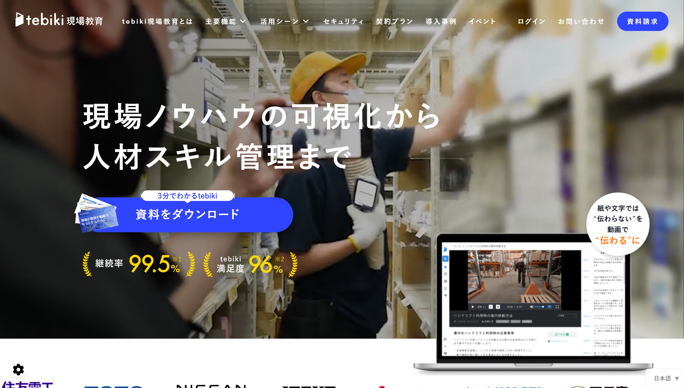 2. tebiki(テビキ):現場向け動画教育システムの最大手