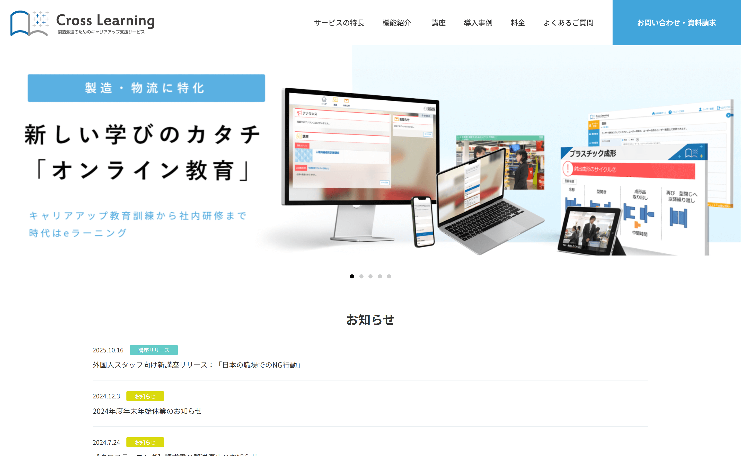 Cross Learning | 製造・物流業の外国人材教育に特化 | 〇 | 〇 (一部) | 月額定額 | 派遣・技能実習生向けの教育をしたい企業 |