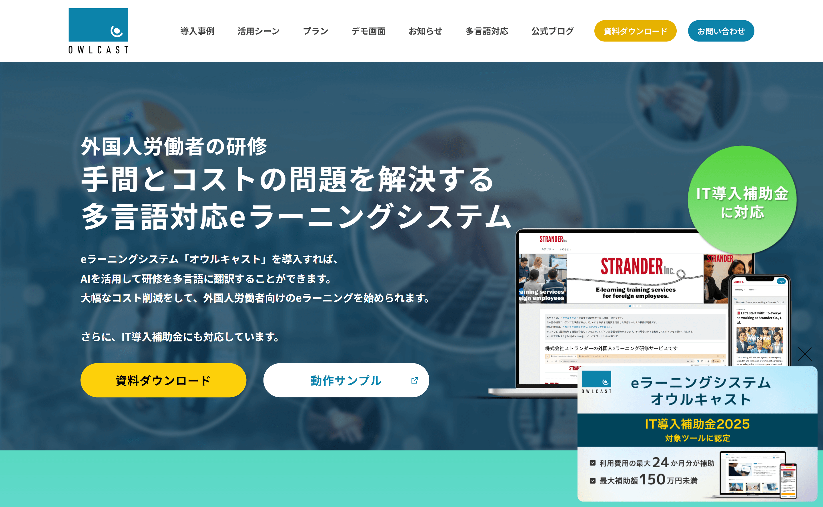 オウルキャスト | 独自の多言語eラーニングサイトを構築・資産化 | 〇 UIも動画(字幕・音声)も 多言語化可能 |