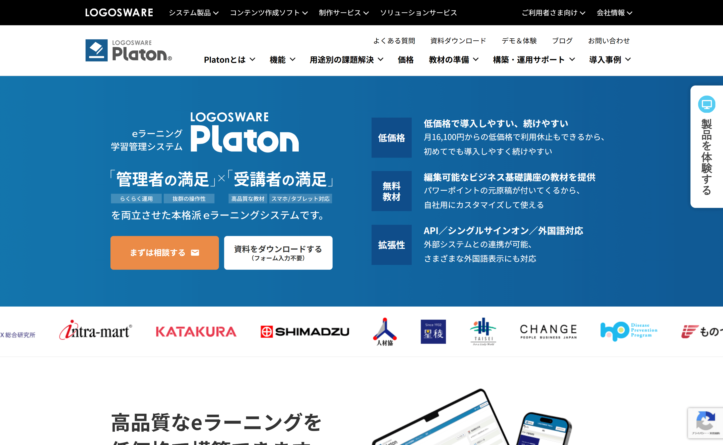 初期費用が無料で、月額料金も比較的安価なため、スモールスタートに適しています。まずはeラーニングの効果を試してみたい、という場合に有力な選択肢となります。